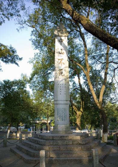 王城内的“中山不死”纪念碑是桂林人民为纪念孙中山先生而建造。塔呈三角形,筑五级台阶,喻孙中山先生三民主义之精神和五权宪法。塔的三面分别有题词“中山不死”“总理遗嘱”“主义常新”。仰止亭有楹联,亭西立有“中山常在”的石碑。