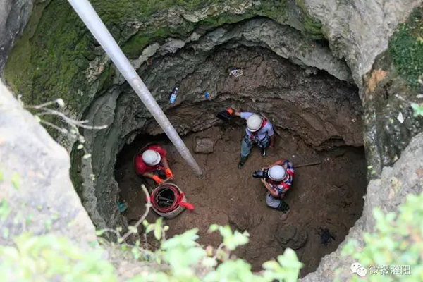 九海井,是一个深不可测的溶洞。它上小下大,井口很小,下面很大。从上往下看,水色碧绿,青幽幽的。据老人们说,不知是哪一年,有一伙好事的年轻人便是想测一下它的深浅度,他们带来了18根棕绳,一头捆上一个大石头,就往井下放,棕绳一根接一根,18根棕绳都放完下去了,可是,石头还在往下坠,它还没到底呢!