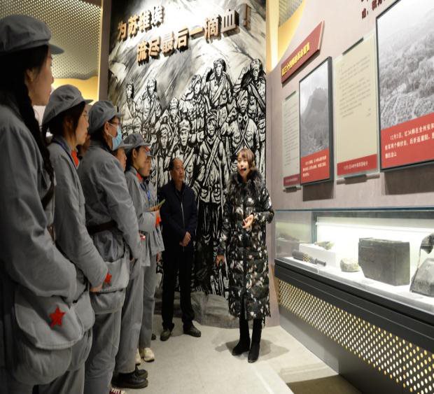 ▲参观新圩阻击战史实陈列馆(专职人员讲解)