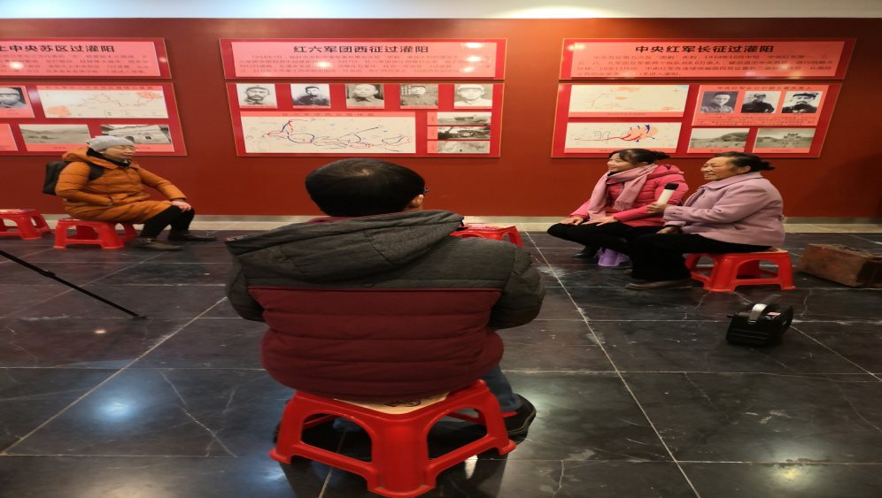 ▲酒海井前,讲述红军英烈“向死而生” 的故事,介绍当地政府组织打捞红军烈士遗骸并举行相关安葬仪式等情况