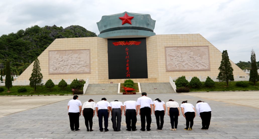 ▲瞻仰红军烈士英名录(讲解:红军3次经过灌阳的基本史实及红34师绝命后卫的悲壮故事)