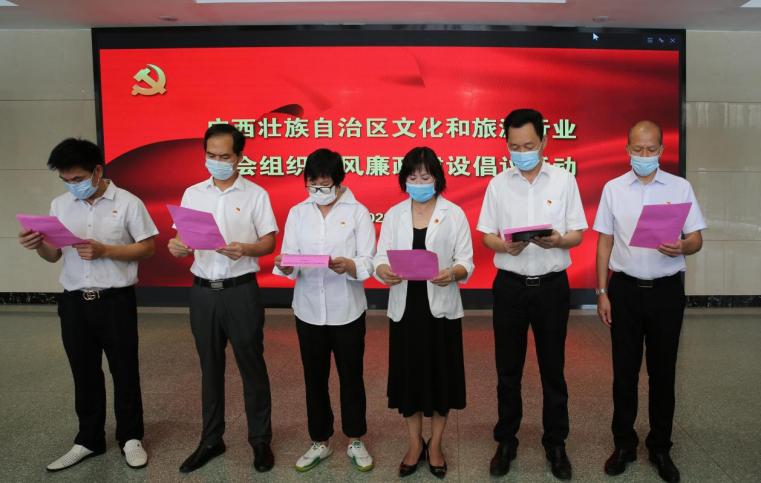 ▲开展广西壮族自治区文化和旅游行业社会组织党风廉政建设倡议活动